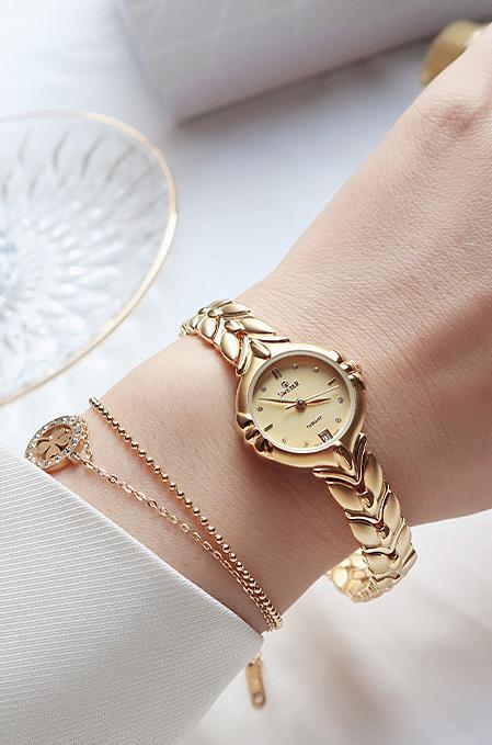 This 24K gold-plated vintage wheat chain mini gold watch for women perfectly blends classic and contemporary styles, making it an ideal choice for the modern woman. Featuring a Japanese imported original movement, it ensures accurate timekeeping and exceptional performance. The sapphire crystal mirror provides excellent scratch resistance, maintaining clarity and shine during use.