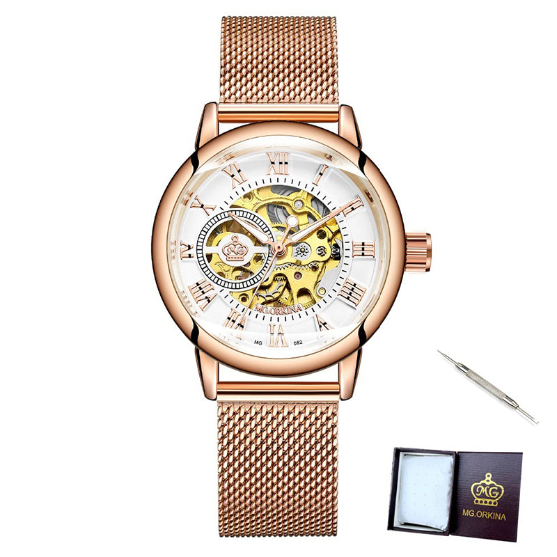 Skeleton Roman Numeral Display: Classic Roman numerals with a skeleton dial for a sophisticated touch