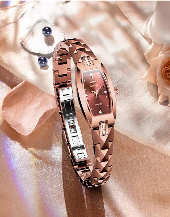 This 18K rose gold-plated women's watch combines minimalist luxury with elegance, designed for modern women who appreciate fashion. Its sophisticated design makes it perfect for everyday wear while also serving as a statement accessory for special occasions. The bracelet-style strap enhances comfort and turns the watch into a delicate piece of jewelry, adding an extra touch of elegance.