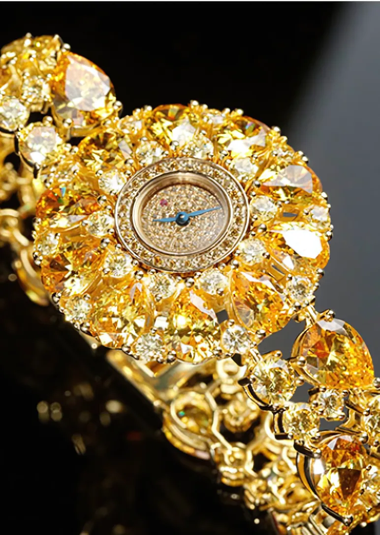 The crystal is made of sapphire, offering excellent scratch resistance to maintain the watch's beauty and durability. With a water resistance depth of 50 meters, you can wear it confidently in daily life without worrying about water exposure. This fully gemstone-set watch perfectly interprets a luxurious lifestyle, making it suitable for various occasions, allowing you to showcase your unique charm and taste whether for everyday wear or special events.
