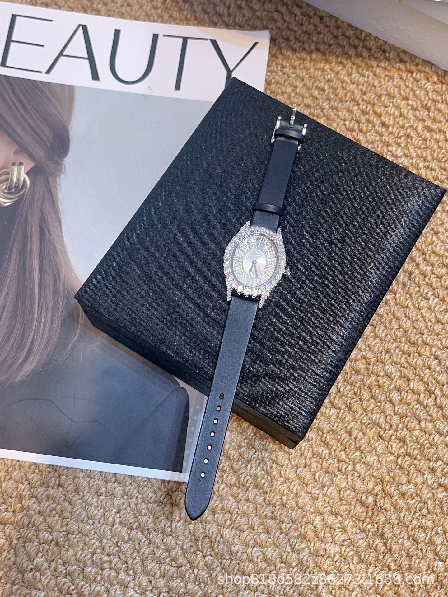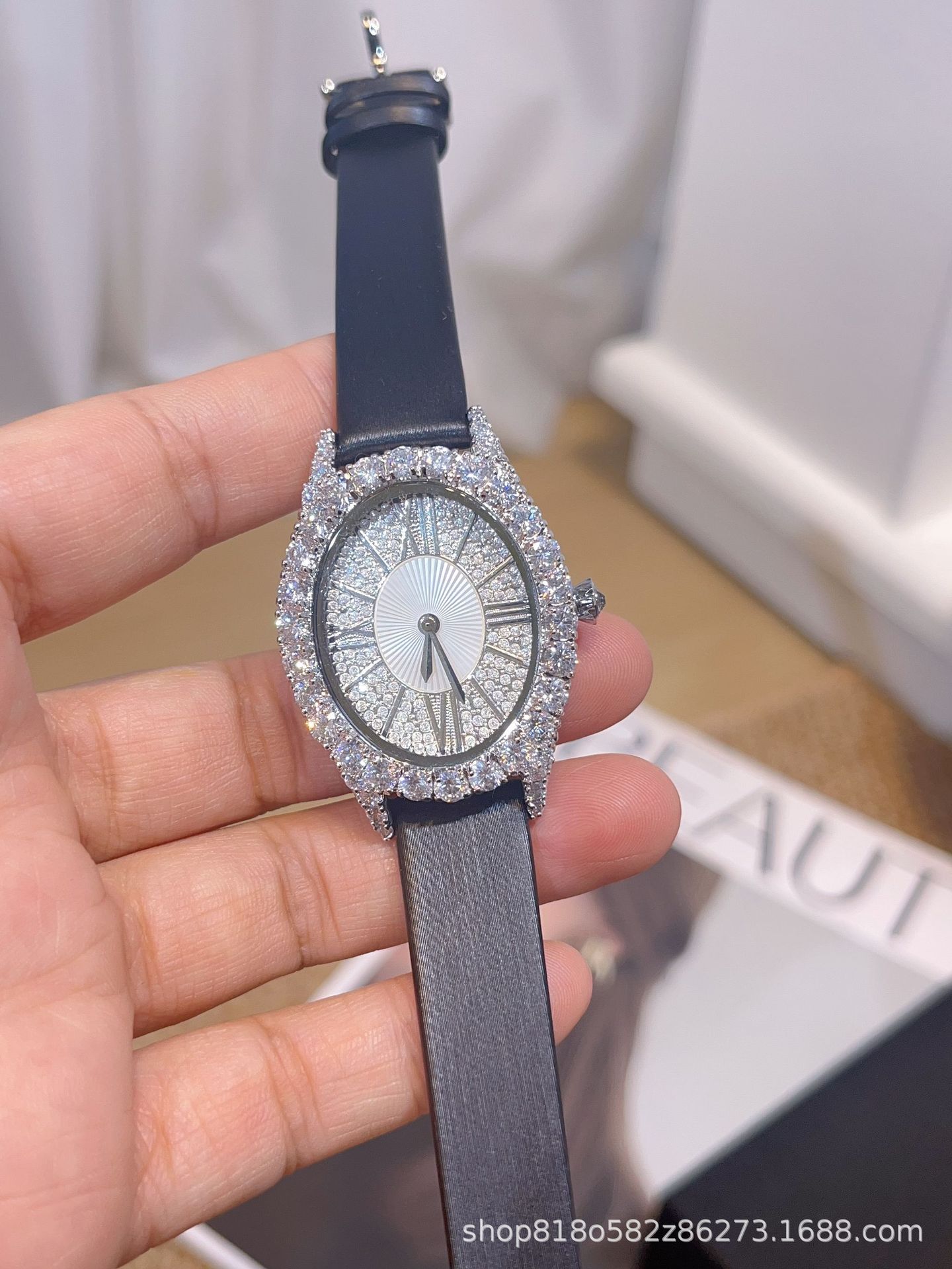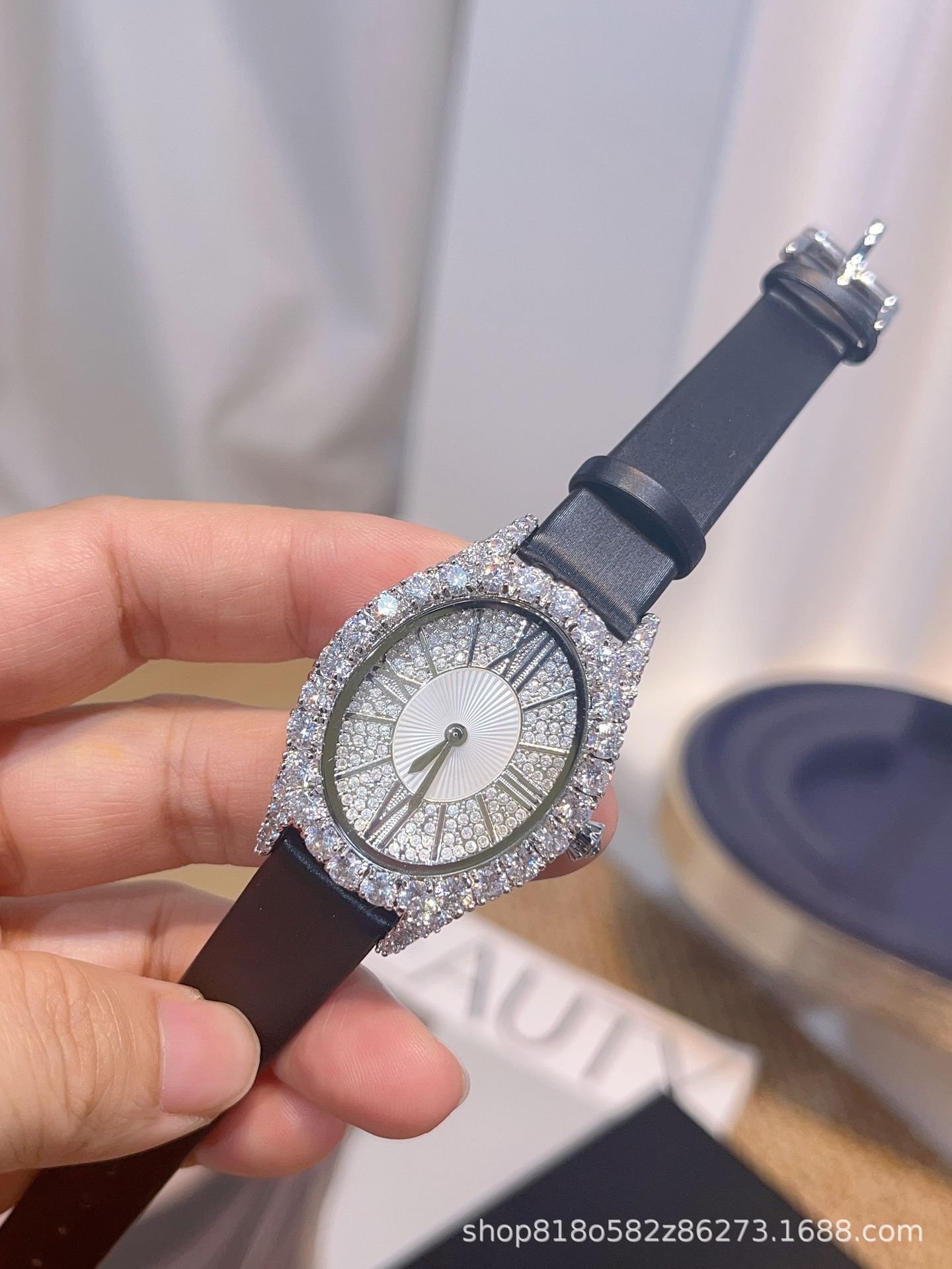The strap is made from premium genuine leather, soft and comfortable, complemented by exquisite full diamond detailing that adds a touch of luxury to the overall design. What sets this watch apart is its customization options; you can choose different colors of leather straps, select the type of gemstones for inlay, and engrave personalized messages, making your watch a true reflection of your unique style.